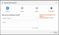 Step 1 of the Cancel Subscription Wizard - Select a Cancel Reason