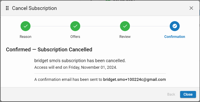 Step 4 of the Cancel Subscription Wizard - Confirmation
