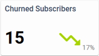 The Churned Subscribers KPI showing 15 subscription terminations representing a 17% decrease from the prior 30 day period.
