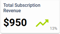 The Total Subscription Revenue KPI showing $950.00 in new and renewing subscription revenue representing a 13% increase from the prior 30 day period.