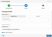 Contact List or Segment: The list or segment that you to which want this campaign to send
